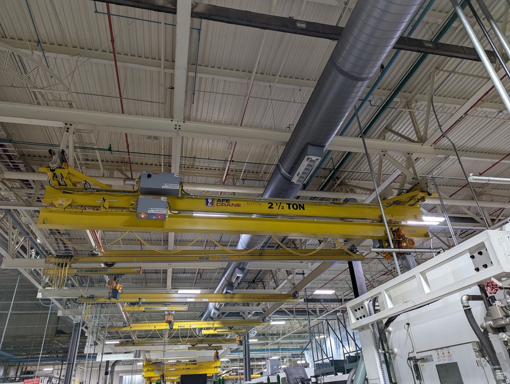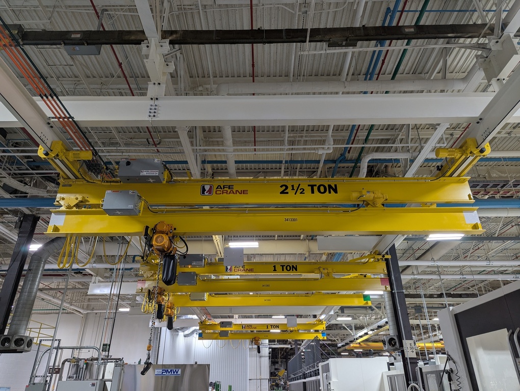 AFE Crane offers two types of telescoping cranes designed for optimal efficiency in confined or restricted spaces: Underhung Single Girder Telescoping Cranes and Underhung Double Girder Telescoping Cranes.